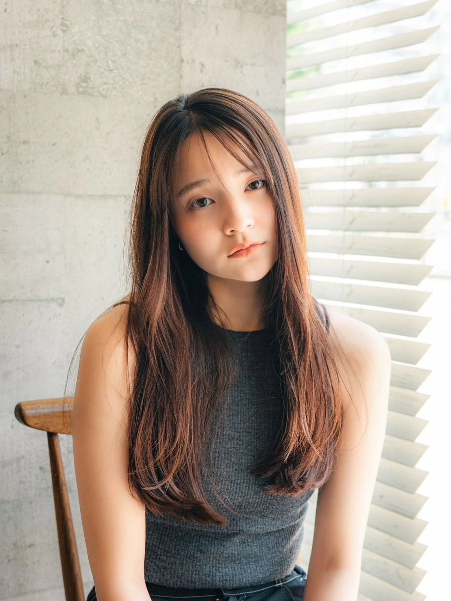 ヘルシーなイメージのロングレイヤー、軽めの前髪