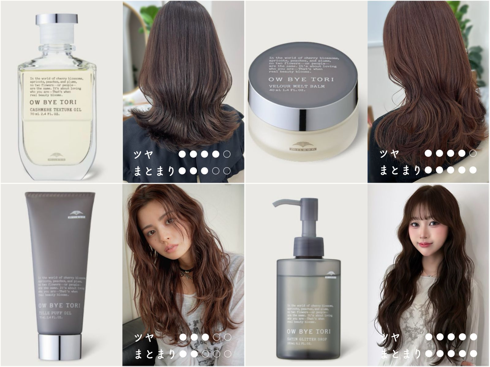 美容学生の皆さん、こんにちは!今回はミルボンから新しく発売された「OW BYE TORI(オーバイトーリ)」をご紹介させていただきます。このシリーズは「髪のダメージ部分にとどまるオイル」と「髪を柔らかくするオイル」が配合されているので、デザインを作ると同時にヘアケアまでしてくれる優れもの。ヘアスタイルをデザインする時の参考にしてみてください!